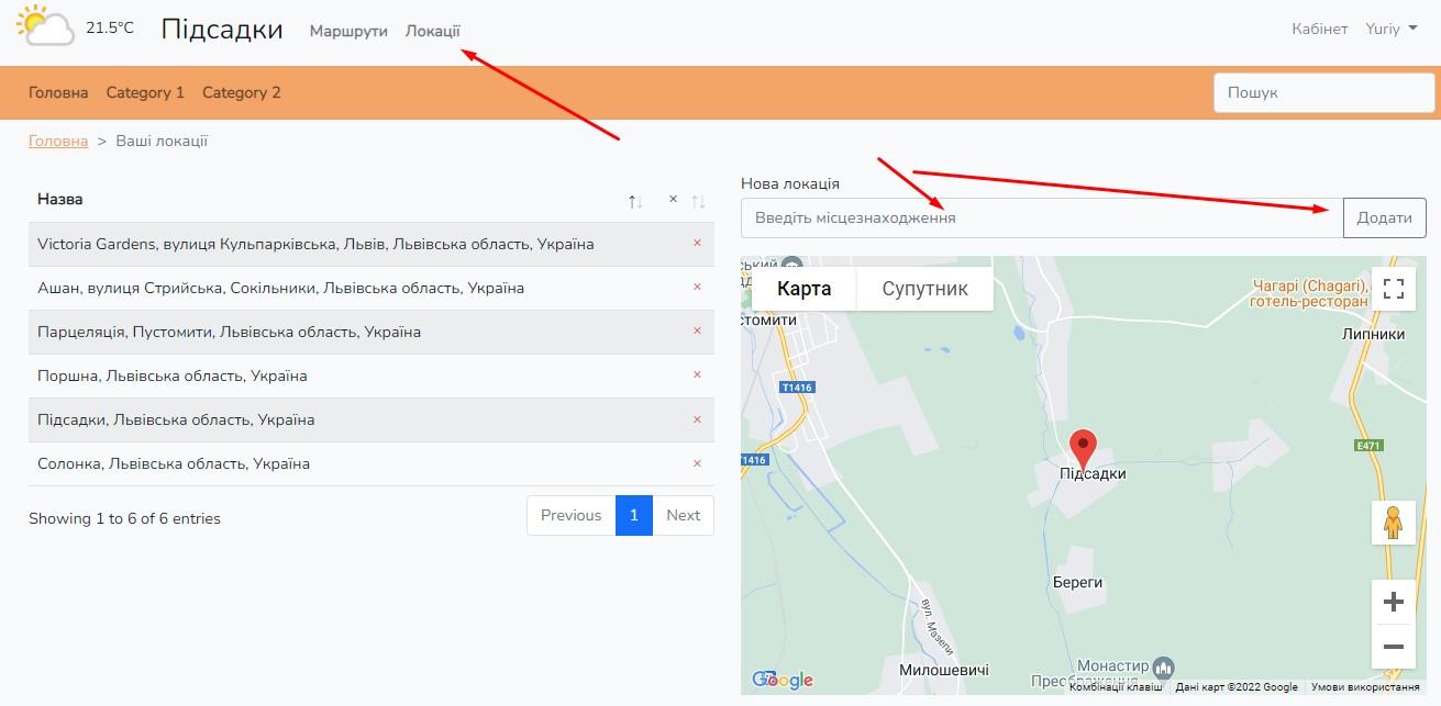 4. Перед створенням першого маршруту спочатку треба зайти на сторінку локації і вибрати та додати у свій список точки маршрутів з гугл форми.